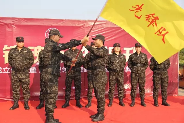 活动现场,身着统一着装的首批学员,迈着铿锵有力的步伐,以高昂的斗志分别展示了充满创意的团队风采,赢得现场阵阵掌声。