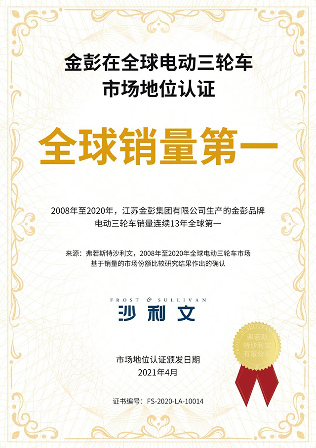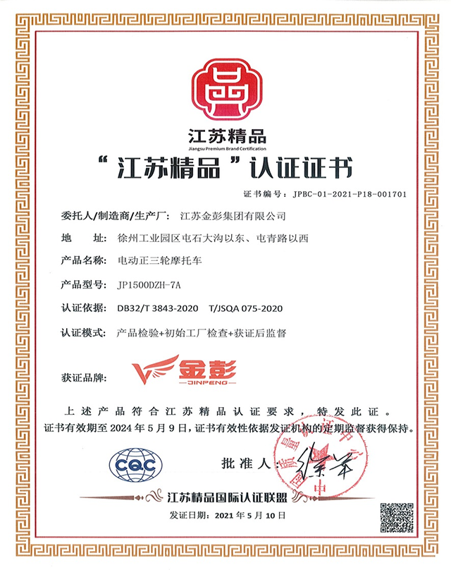 2021年5月10日,bg大游集团再传喜讯,bg大游集团生产的电动正三轮摩托车产品,荣获 “江苏精品”认证证书,bg大游集团是江苏电动车行业唯一一家获得“江苏精品”认证殊荣的企业;打造“江苏精品”是江苏省委省政府实施创新驱动战略、发展品牌经济、推动经济社会高质量发展的一项重要举措。此认证是由江苏精品国际认证联盟,依据国际通行认证标准和流程,严格评选出的,定位于“国内先进、国际一流”,认证通过的产品和服务可以说是高质量的代名词。此次bg大游集团荣获“江苏精品”的认证,公司将以此为新的起点,继续夯实基础,强化管理,注重科技创新,严把产品质量,持续打造“江苏精品”,续写高质量发展新篇章。
