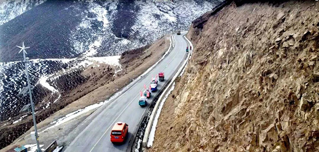 虽是阳春三月,路边积雪依然未曾融化。挑战难度不言而喻,这却是西北山区电动车用户日常生活中随处可见的使用场景。