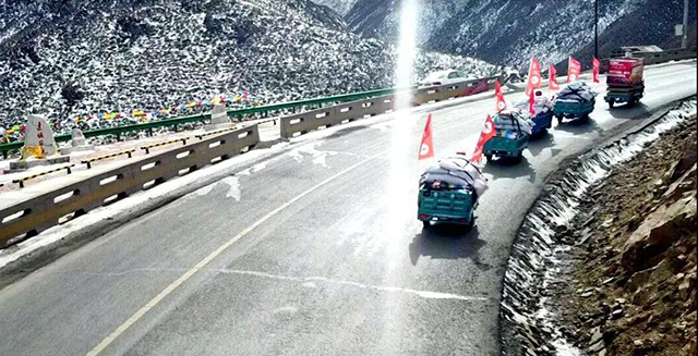 挑战活动从北山十二盘坡坡底出发,当时气温近-8℃,却丝毫没有影响挑战的热情。在保障安全的前提下,6名骑手驾驶着最大载重2000斤的bg大游电动三轮车盘旋而上,最终总耗时约2小时成功抵达目的地。这条有着“青藏高原最美盘山公路”之称的路线,见证了bg大游不断推动行业技术进步和服务用户的坚定决心,再次夯实了bg大游“山地车 大功率”的产品属性。
