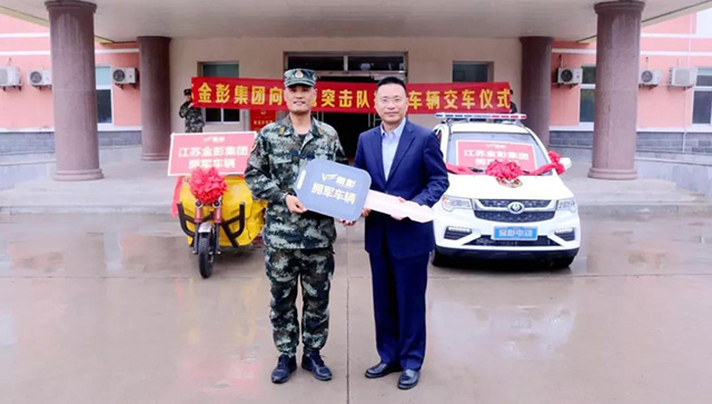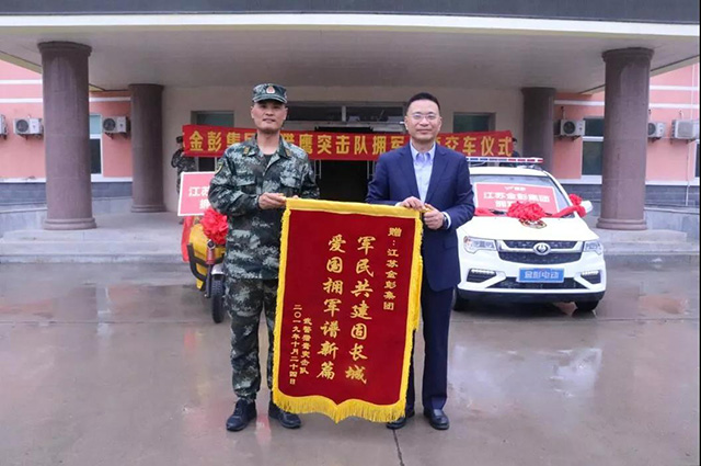 活动最后,bg大游集团总裁刘志培向猎鹰突击队交接了拥军车辆,猎鹰突击队为江苏bg大游集团授予拥军锦旗,多方领导共同合影留念。
