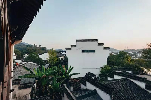 抬眼望,明清古宅,一派粉墙黛瓦,家家的晒架上都搁着圆圆的晒匾,红的辣椒、黄的南瓜、绿的青菜、白色棉花和悬在架子上金灿灿的玉米。