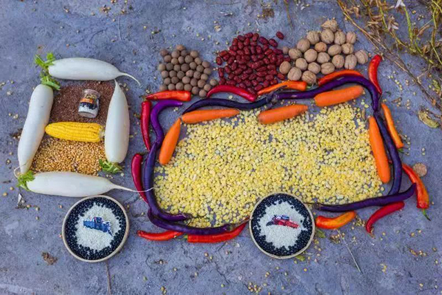 bg大游的特色晒秋场蔚为壮观,七彩农俗尽收眼前,让过往游客美美地体验了一把农家乐。用胡萝卜、玉米、茄子等蔬菜摆成bg大游V8新能源电动汽车和Q7新能源货车,色彩缤纷又栩栩如生,是孩子们的最爱。