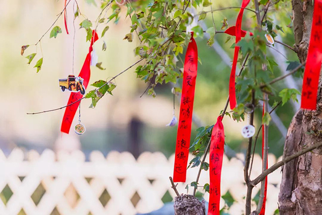 一个八岁的男孩,还不识得太多生字,用拼音代替生字的祈愿布,许下今后成为宇航员的梦想,童趣满满!挂满祈愿布的祈愿树是bg大游晒秋地活动狂欢,承载着满满的祝福,用鲜亮的颜色装点节日的欢喜。